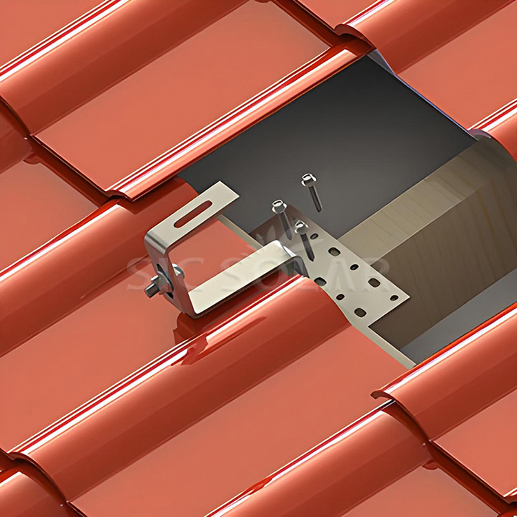 2)I supporti per tetto in tegole del pannello solare consentono di regolare l'angolo di installazione dei pannelli solari per ottimizzare l'esposizione al sole e la produzione di energia, il che è particolarmente vantaggioso per le regioni con latitudini e condizioni solari diverse.